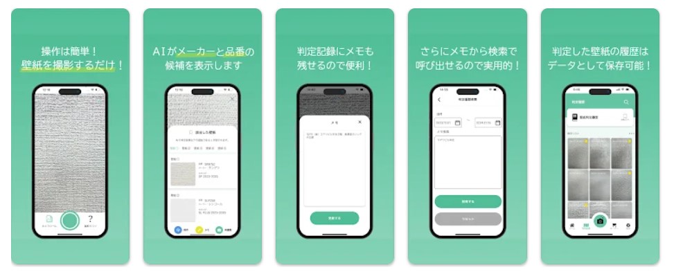 「かべぴた」は壁紙を撮影するだけで、該当するメーカーと品番を識別するアプリです。