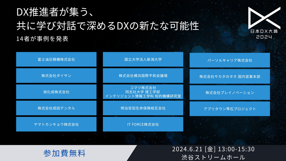 DX推進に取り組まれる方やご興味のある方は、最新のDX事例やノウハウを共有し、ネットワークを広げられる機会ですので、ぜひご検討ください。