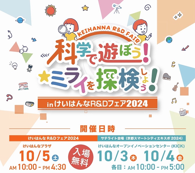 また10月5日(土)には、「科学で遊ぼう!ミライを探検しよう!inけいはんなR&Dフェア」と題して、子どもたちが科学の面白さを体感できるイベントも行われます。