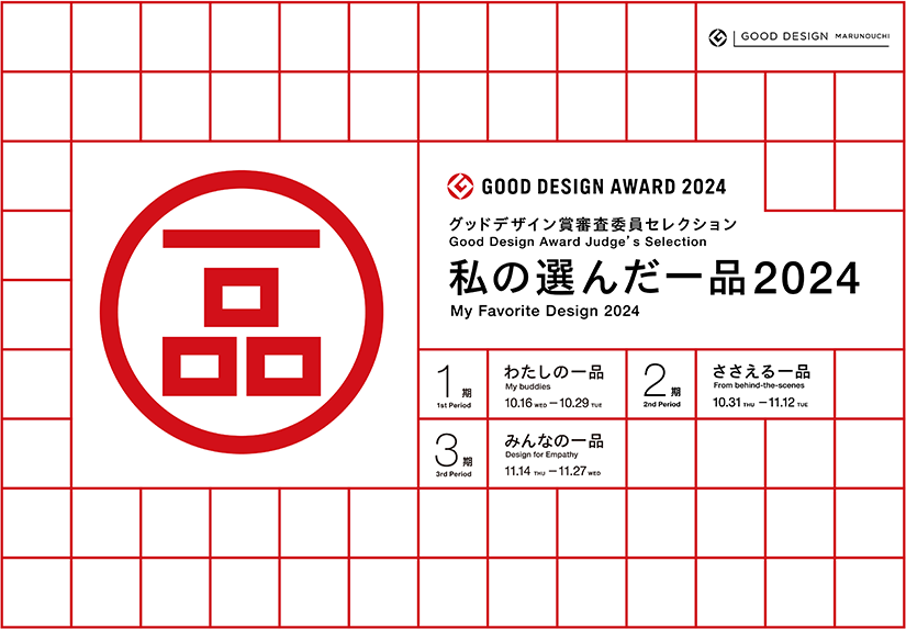 最新のグッドデザイン賞受賞デザインを最速で紹介する「私の選んだ一品」は、10月16日(水)よりGOOD DESIGN Marunouchiにて開催されています。2024年度の受賞デザインから、全103名の審査委員が選んだお気に入りの「一品」87点とメッセージを3期に分けて紹介しています。