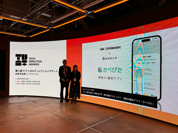 コマツ株式会社(以下、「当社」)と同志社大学 理工学部インテリジェント情報工学科 知的機構研究室(奥田正浩教授)の産学連携プロジェクトで共同開発した壁紙AI識別アプリ『かべぴた』の受賞イベントで、さる11/16(土)14時から、渋谷404 NOT FOUNDにて、当社代表取締役 小松智と、取締役 小松真理が、「他社との共創」をテーマにトークセッションを行いました。